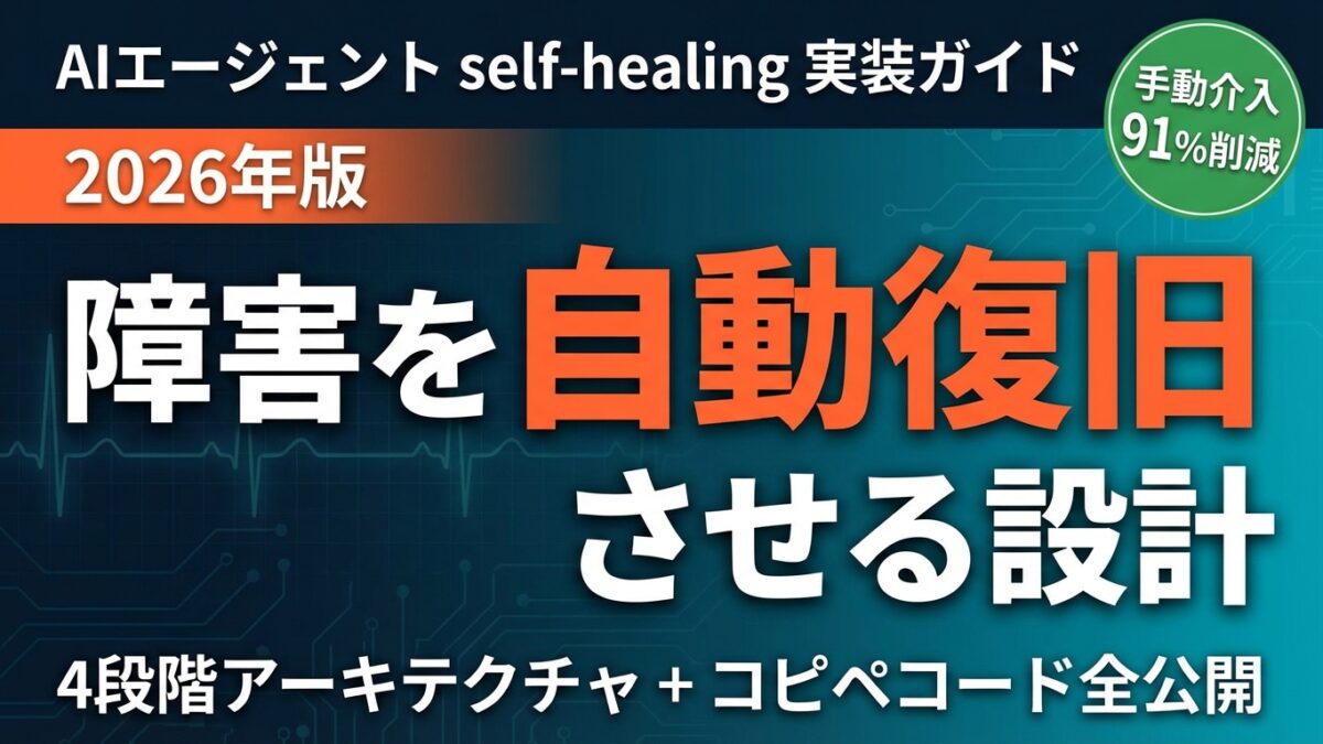 AIエージェントがアラート検知→根因分析→自動復旧まで自律的に実行するself-healingアーキテクチャの実装方法を解説。障害タイプ別の復旧戦略と、人間への通知・介入ポイントの設計をコピペ可能なコードで紹介します。