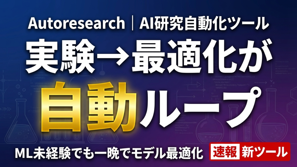 2026年3月、Andrej Karpathy(元Tesla AI責任者、OpenAI共同創業者)がこの問題にシンプルな答えを出した。autoresearch——630行のPythonコードで実装された、AI自律実験フレームワークだ。「寝ている間にAIが100回実験する」というコンセプトが、ML研究の常識を揺さぶり始めている。