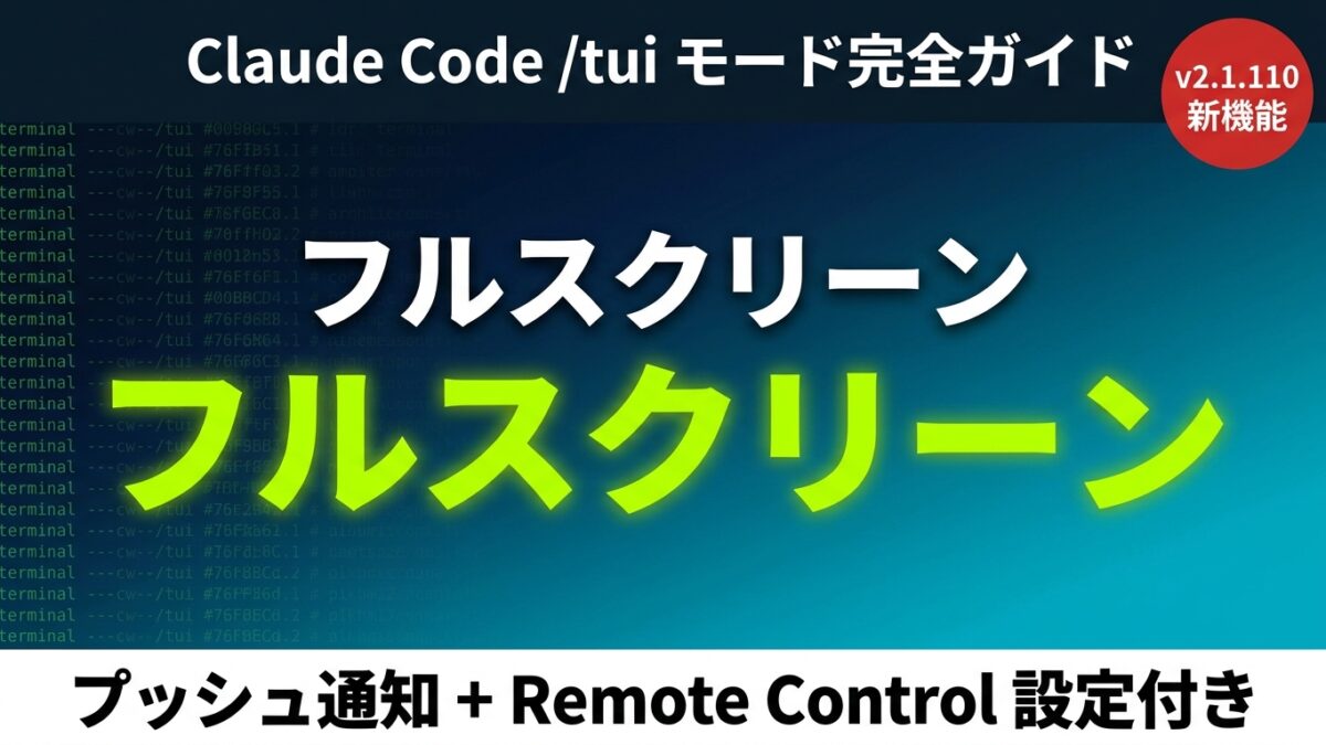 2026年4月15日リリースのClaude Code v2.1.110は、この問題に対して二つの答えを出してきました。一つは `/tui` コマンドによるフルスクリーンのフリッカーなしレンダリング。もう一つはRemote Control連携によるモバイルプッシュ通知です。