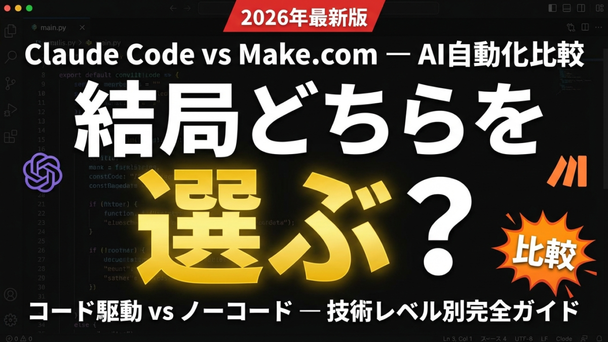 結論: Make.comは「今すぐ動かしたい、技術不問」の入口として最適。Claude Codeは「スケールするコードベースを自分で育てたい開発者向け」の選択肢。月10,000件以上の自動化を本気でやるなら、Claude Codeが長期コスト面で有利になる。