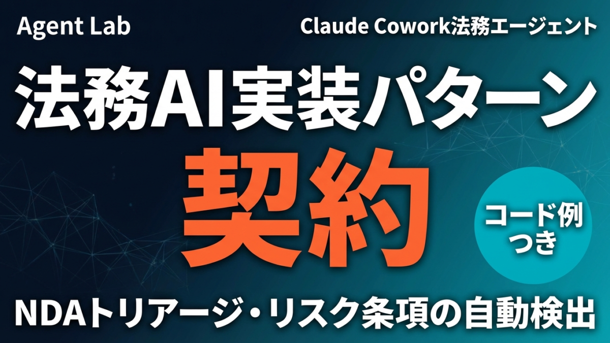 この記事では、Claude Cowork法務プラグインのアーキテクチャを技術的に解剖し、開発者が自社の法務AIエージェントを設計・実装するための具体的なパターンを提示する。コピペ可能なコード例と、よくある設計ミスの回避策を含む。