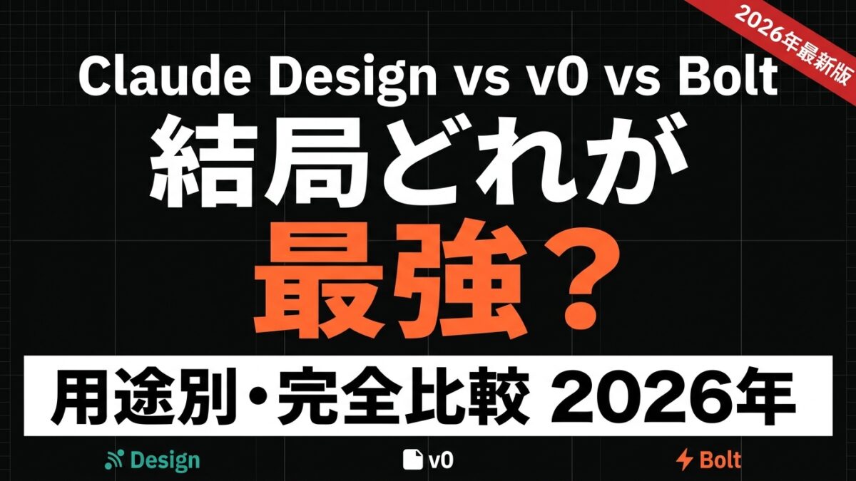 すでにv0(Vercel)とBolt(StackBlitz)は開発者の間で広く使われているが、Claude Designが加わったことで「何をどのツールで作るか」の判断が難しくなってきた。この記事では3ツールを実際に試した上で、用途別に整理する。