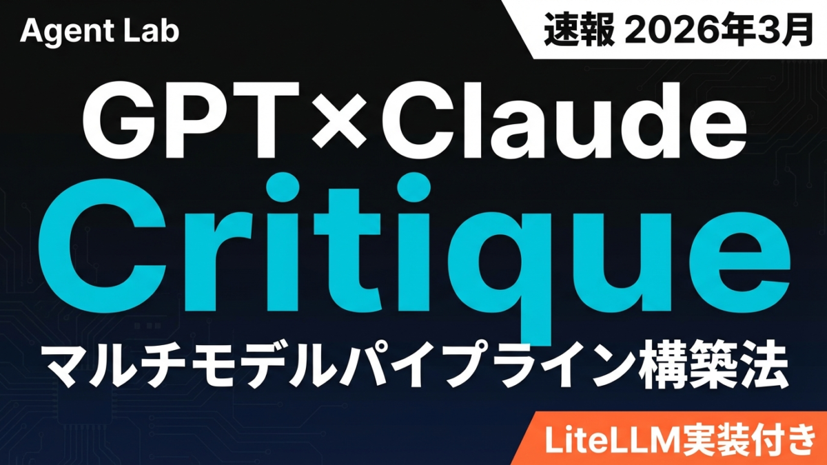 この記事では、MicrosoftがCopilotで実現したCritique・Councilパターンを、開発者が自前のエージェントパイプラインで再現する方法を解説する。LiteLLMを使った実装コードと、よくある落とし穴を含めて紹介していく。
