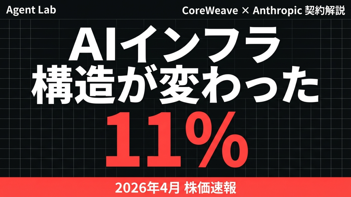 2026年4月10日、AIインフラ企業CoreWeaveがAnthropicとのマルチイヤー契約を発表した。株価はその日に11%上昇した。単発のニュースとして読むこともできるが、前後の文脈を並べると、AIインフラ市場の構造変化がくっきりと見える。