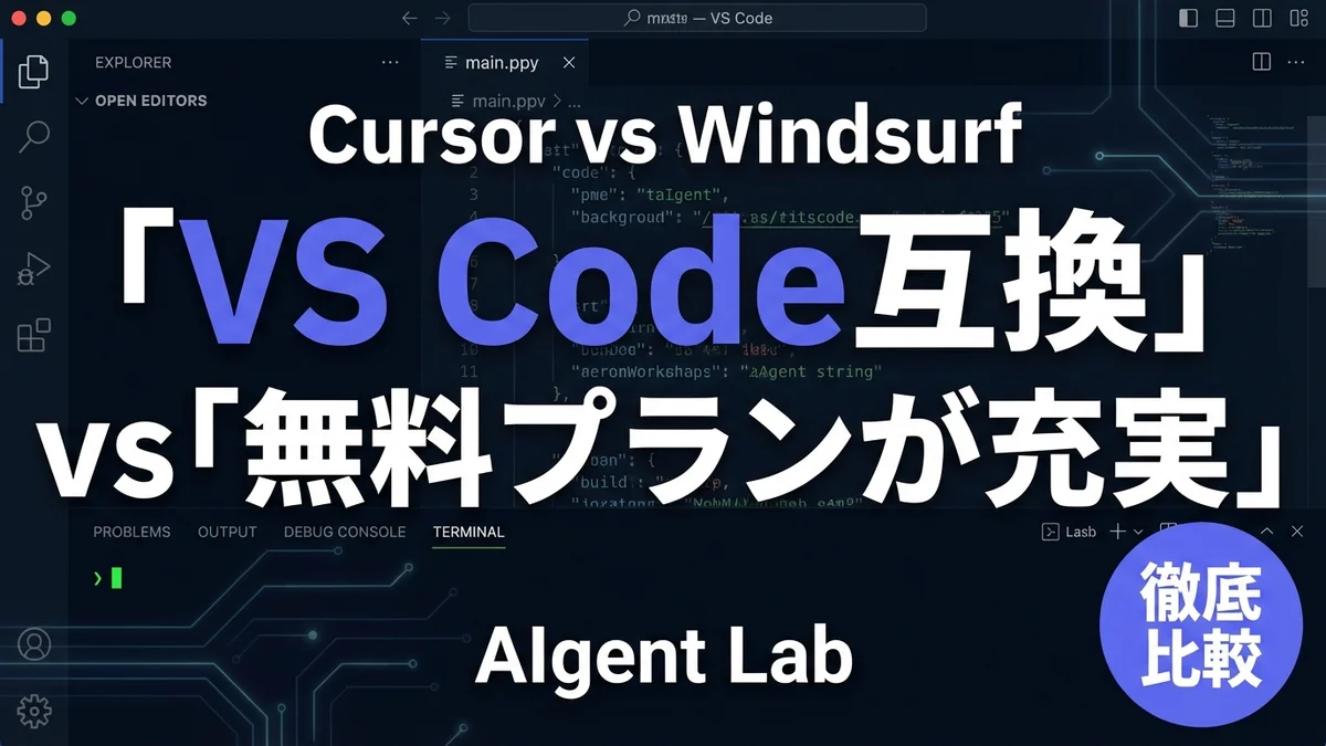 - CursorはVS Codeとの親和性が高く、高度なコード理解と編集機能を提供します。一方、Windsurfは無料プランが充実しており、コストパフォーマンスに優れています。