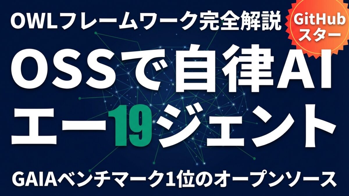 この記事でわかること: OWLはCAMEL-AIが開発したオープンソースの自律AIエージェントフレームワーク。GAIAベンチマークでオープンソース1位(69.09%)を達成し、GitHubで19,000超のスターを集めています。Manus AIの代替として急速に注目され、GPT-4o・Claude・DeepSeek・Ollamaなど主要LLM全対応で5分でローカル環境に構築できます。