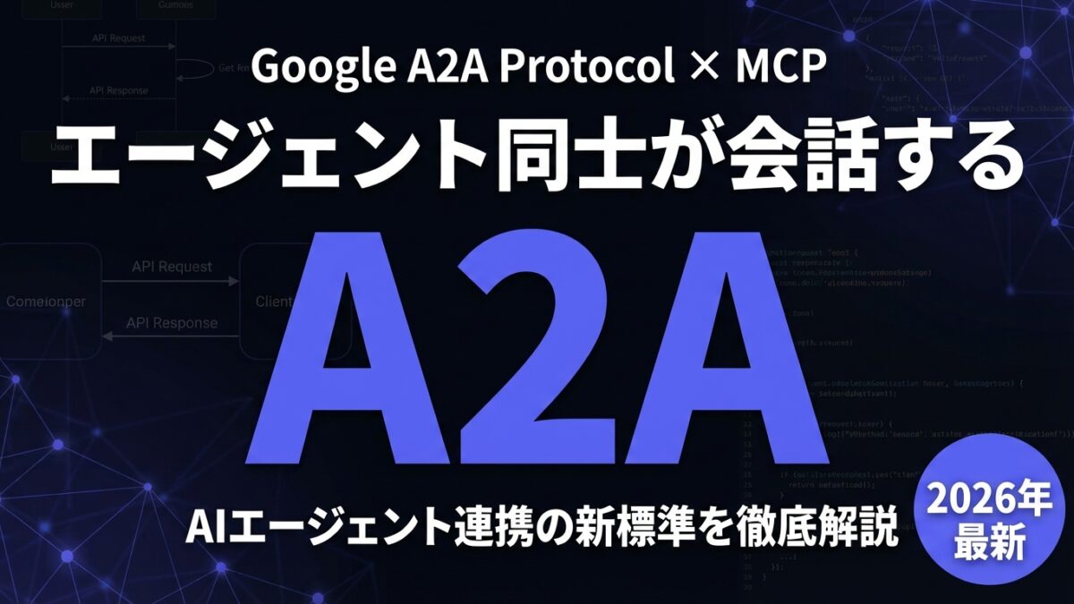 GoogleのA2A(Agent-to-Agent)プロトコルを徹底解説。MCPとの違い、Agent Card・Task・Streamingの仕組み、Python SDKでの実装方法、ハマりやすいポイントまで。エージェント間通信の新標準を理解する。